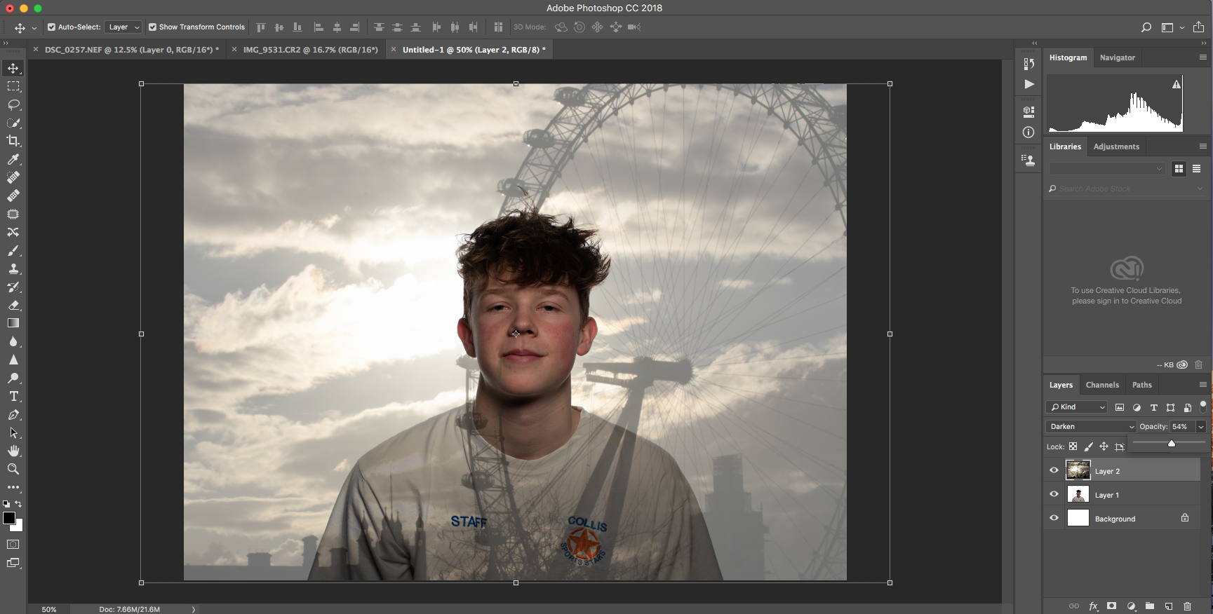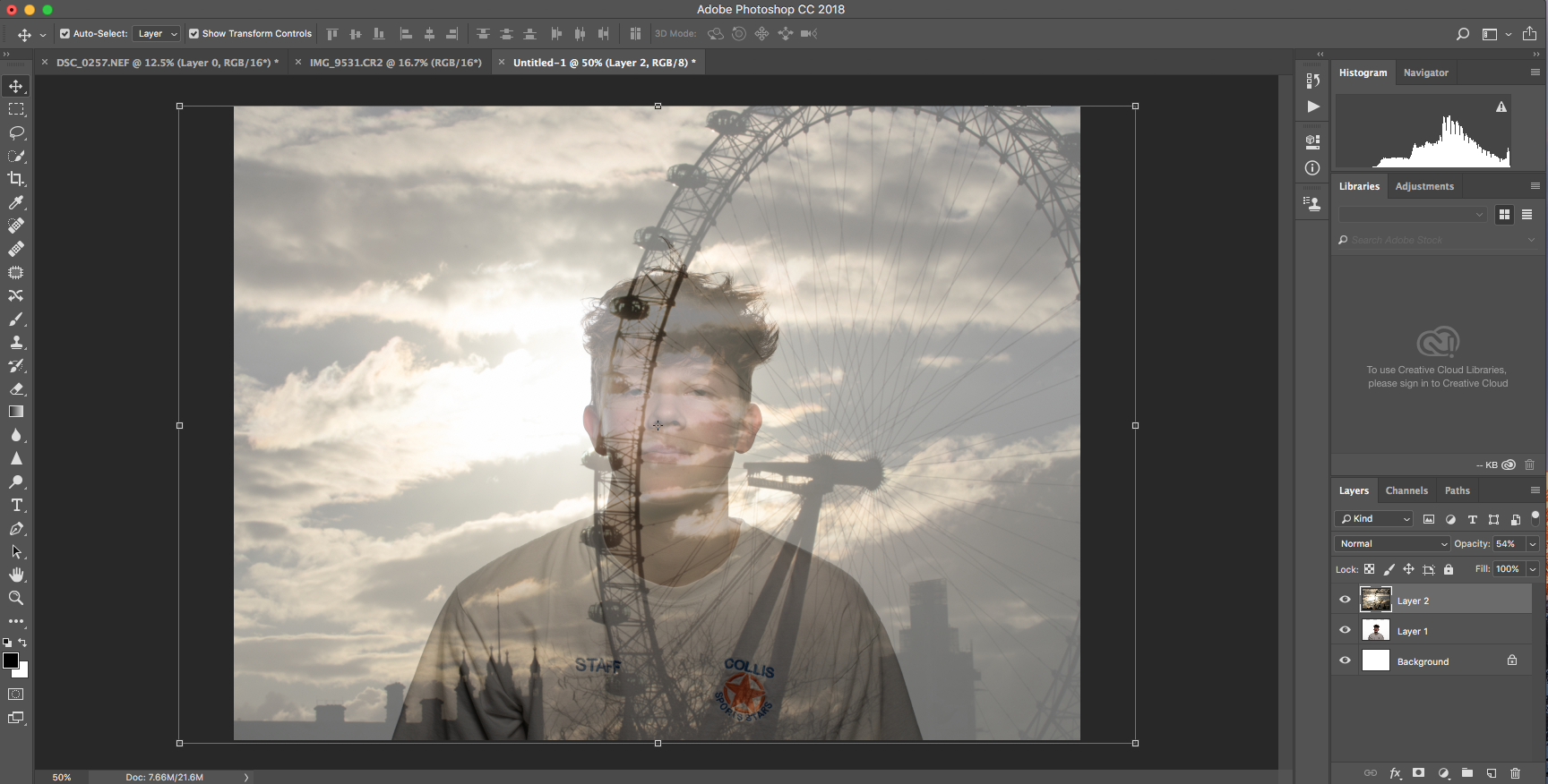 I overall was happy with the way my image came out, it was a fairly simple image to make and was able to quickly do this. I like my response to Jasper James work as it show my city London instead of that of something like shanghai such as in his work. although with the time i had i was unable to get a good skyline shot and believe it is a weak picture compared to that of Jasper James work, I also believe my portrait could have had a more silhouette look to it but i couldn’t edit it without it looking worse the original image.